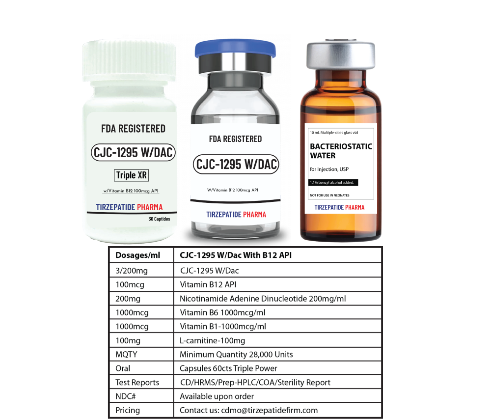 FDA-registered peptide with Vitamin B12-100mcg API. Manufactured with approved DMF according to the Federal Food, Drug, and Cosmetic Act for commercial distribution, ANDA registration, or clinical trials